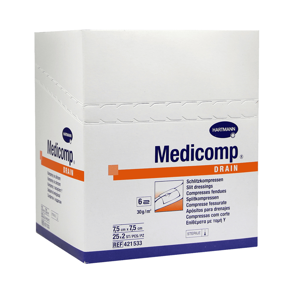 ΠροβολήMEDICOMP DRAIN ΓΑΖΑ ΑΠΟΣΤ ΤΡΑΧ 7.5X7.5 25X2 K421533