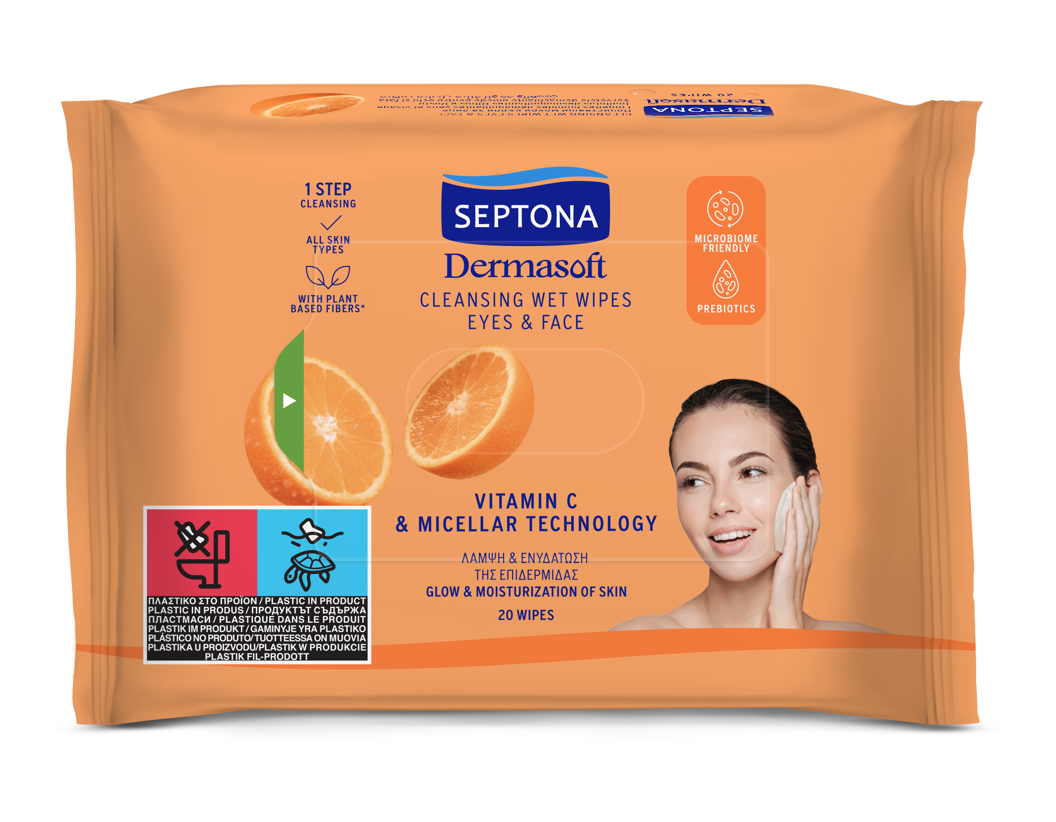 ΠροβολήΥγρά μαντηλάκια καθαρισμού προσώπου & ματιών με βιταμίνη C & τεχνολογία micellar 20 τμχ (1+1 Δώρο)