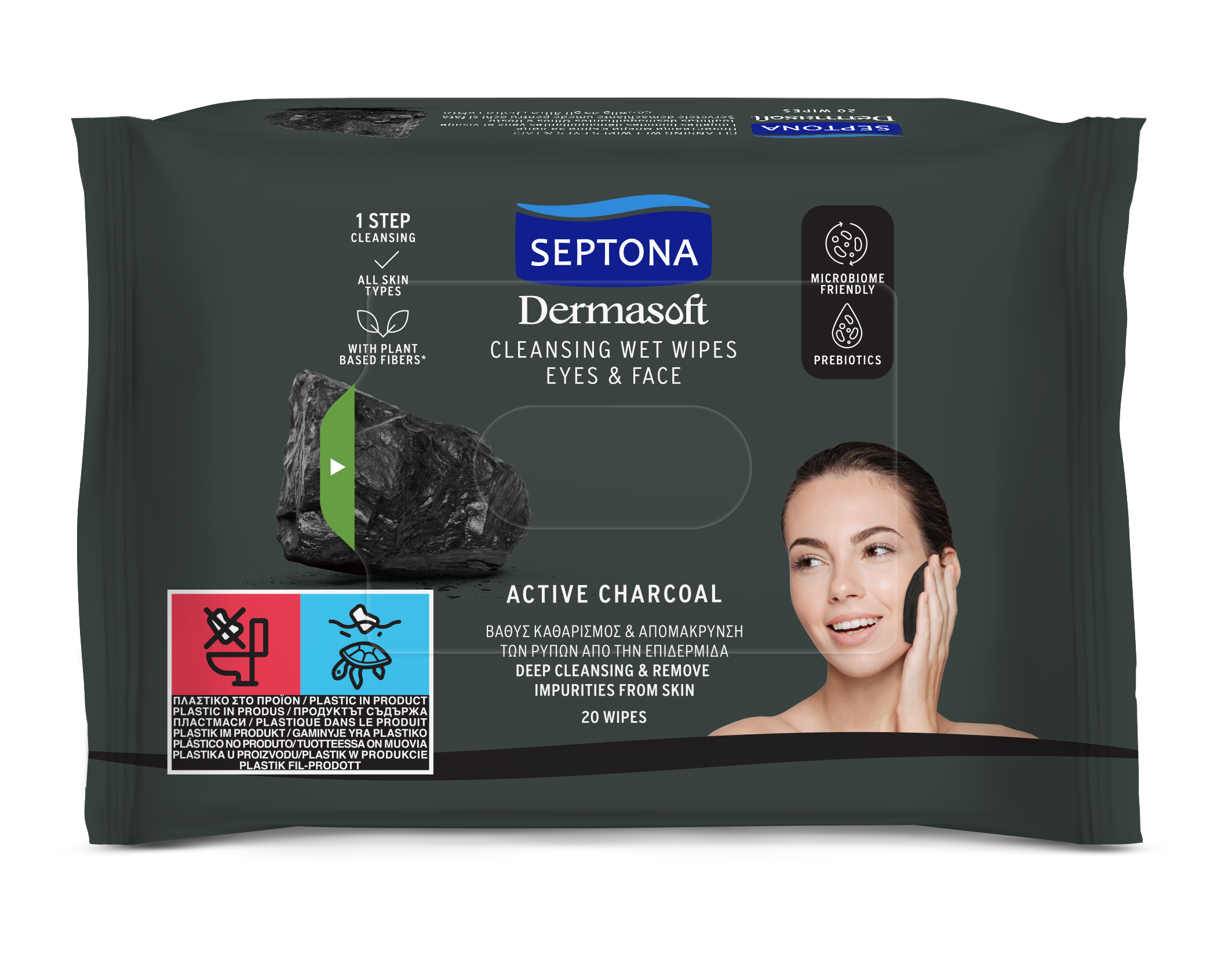 Υγρά μαντηλάκια καθαρισμού προσώπου & ματιών με ενεργό άνθρακα 20 τμχ (1+1 Δώρο)