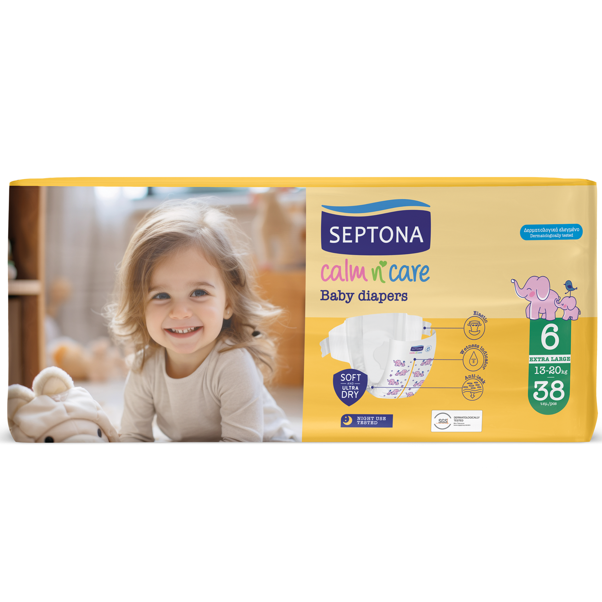 ΠροβολήSEPTONA BABY DIAPERS EXTRA LARGE No6(13-20kg)38pcs